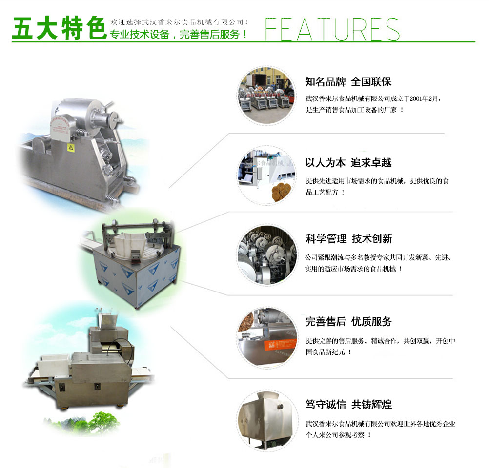 武漢香來爾食品機械有限公司成立于2001年2月,是生產銷售休閑食品加工設備的廠家。公司緊跟市場潮流與華工、華農多名共同開發(fā)新穎、實用的適應市場需求的食品機械,自有車、刨、鉆、銑、剪板、折彎等先l進機床100多臺 套。7年誠信通會員,產品出口拉美、非洲、東南亞、歐洲等很多國家和地區,國內很多食品企業都是我們的合作伙伴。目前公司專門設立一個的售后 服務班子,在公司逐步發(fā)展強大的過程中,一直堅持售后服務的同步發(fā)展,精良的食品設...